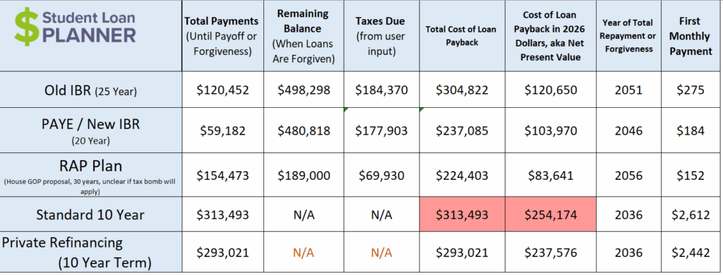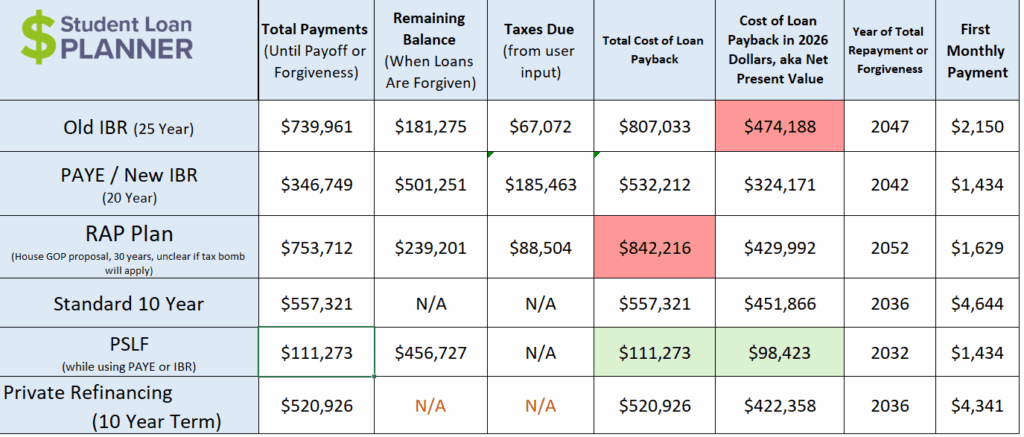 Look at the massive difference between PSLF versus other IDR plans and private student loan refinancing. We're talking hundreds of thousands of dollars in savings by sticking with PSLF.