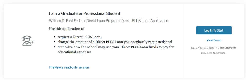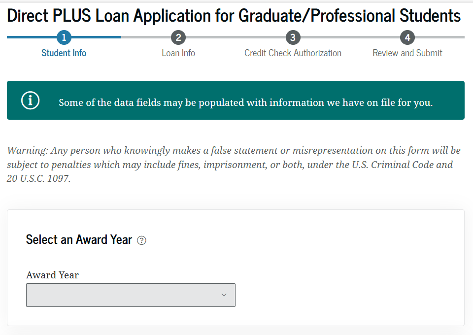It doesn’t include the FAFSA, which must be filled out prior to applying for a Grad PLUS Loan. Before you begin the application, you’ll need: