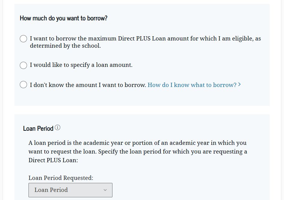 Lastly, if you’re requesting a specific amount, figure that number out beforehand. You can also check a box that says “I want to borrow the maximum Direct PLUS Loan amount for which I am eligible, as determined by the school,” if you need full funding minus the aid you received.
