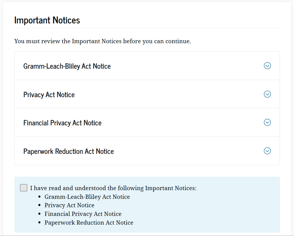 You'll also need to review important notices and certify that the information you've provided is true, complete and correct to the best of your knowledge.